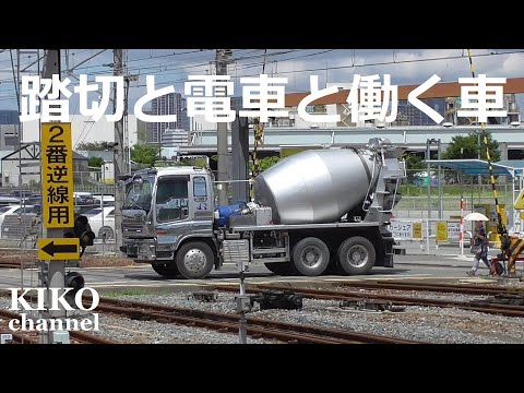 The Japanese dump trucks, tank trucks, cargo and Trains Videos for children. On the railroad crossing at Osaka in Japan. vol.2