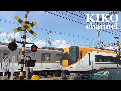 踏切 近鉄電車と阪神電車そして近鉄特急の通過列車集 西大寺4号踏切道 railroad crossing japan